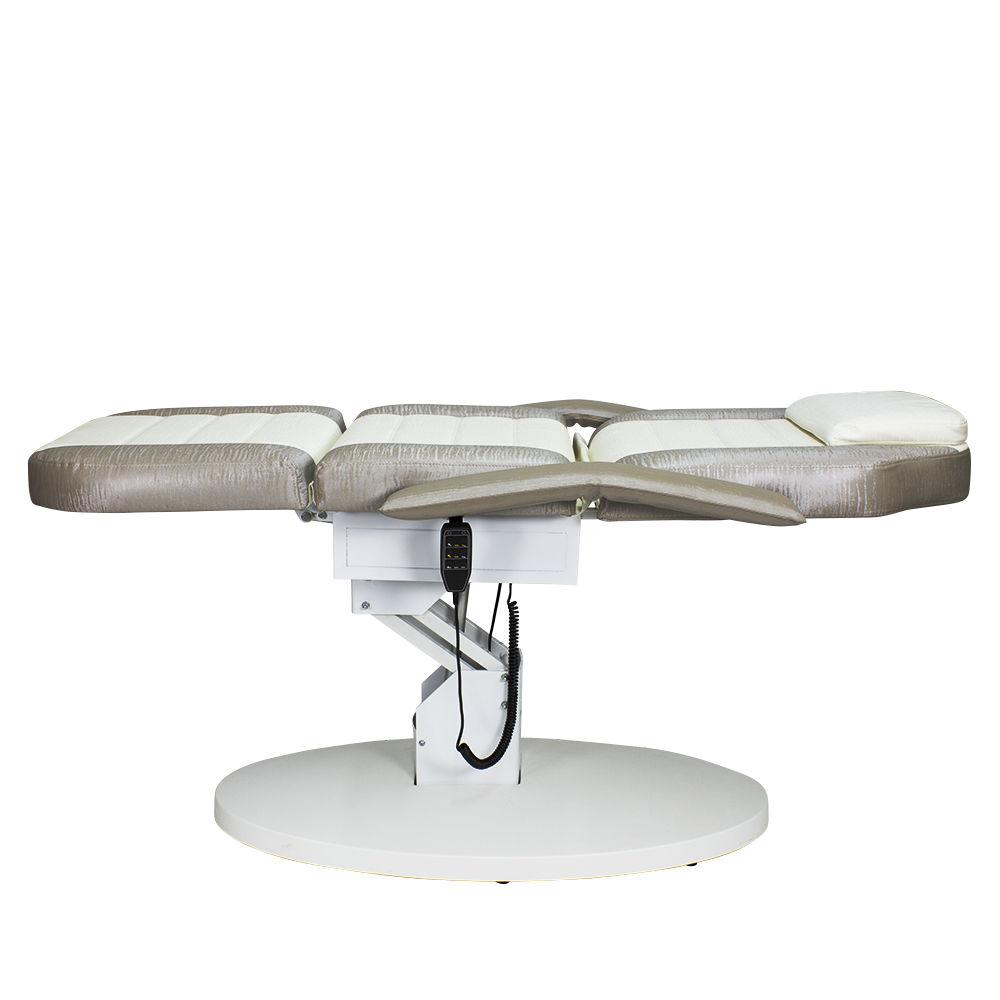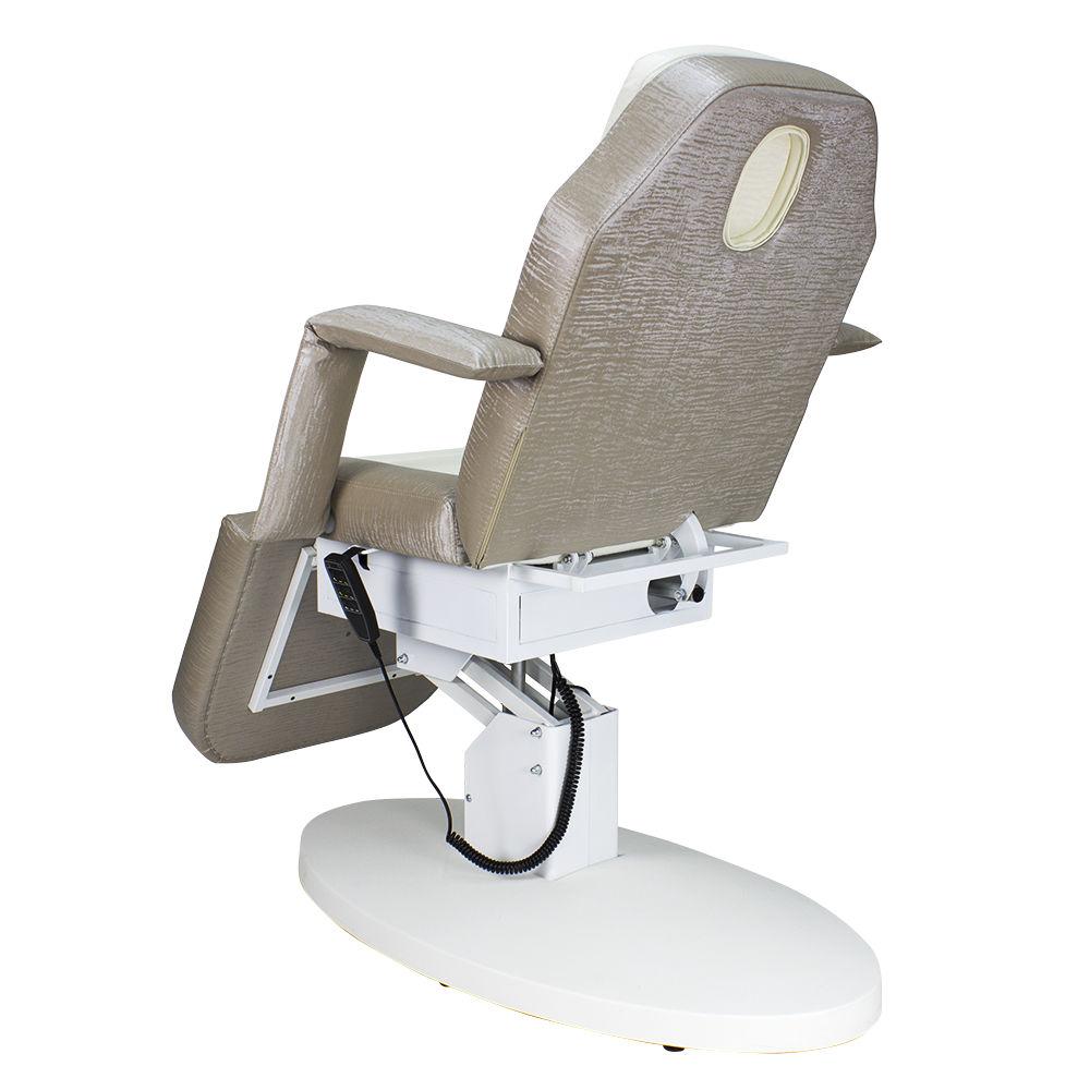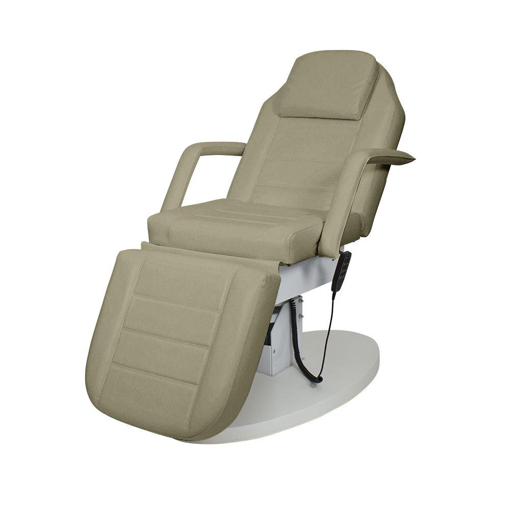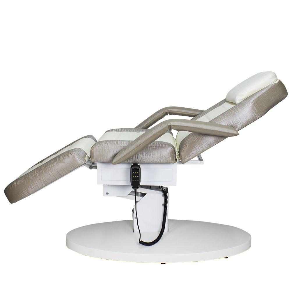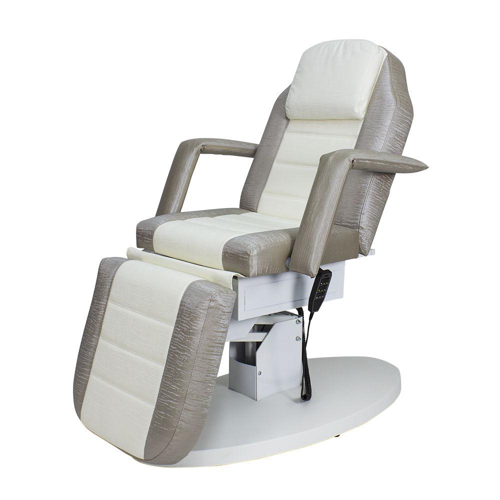 Кресло косметологическое "Элегия-03" (Элегия-2) комплектуется тремя моторами электропривода, которые позволяют быстро и с комфортом для клиента менять положение мягких элементов. Пользуясь регулировками, мастер может трансформировать кресло в горизонтальное положение и использовать его в качестве косметологической или массажной кушетки. Подлокотники и подушка снимаются. Управление электроприводом осуществляется при помощи удобного пульта, который крепится к каркасу. Мягкая часть выполнена из упругого поролона и качественной, влагостойкой экокожи.