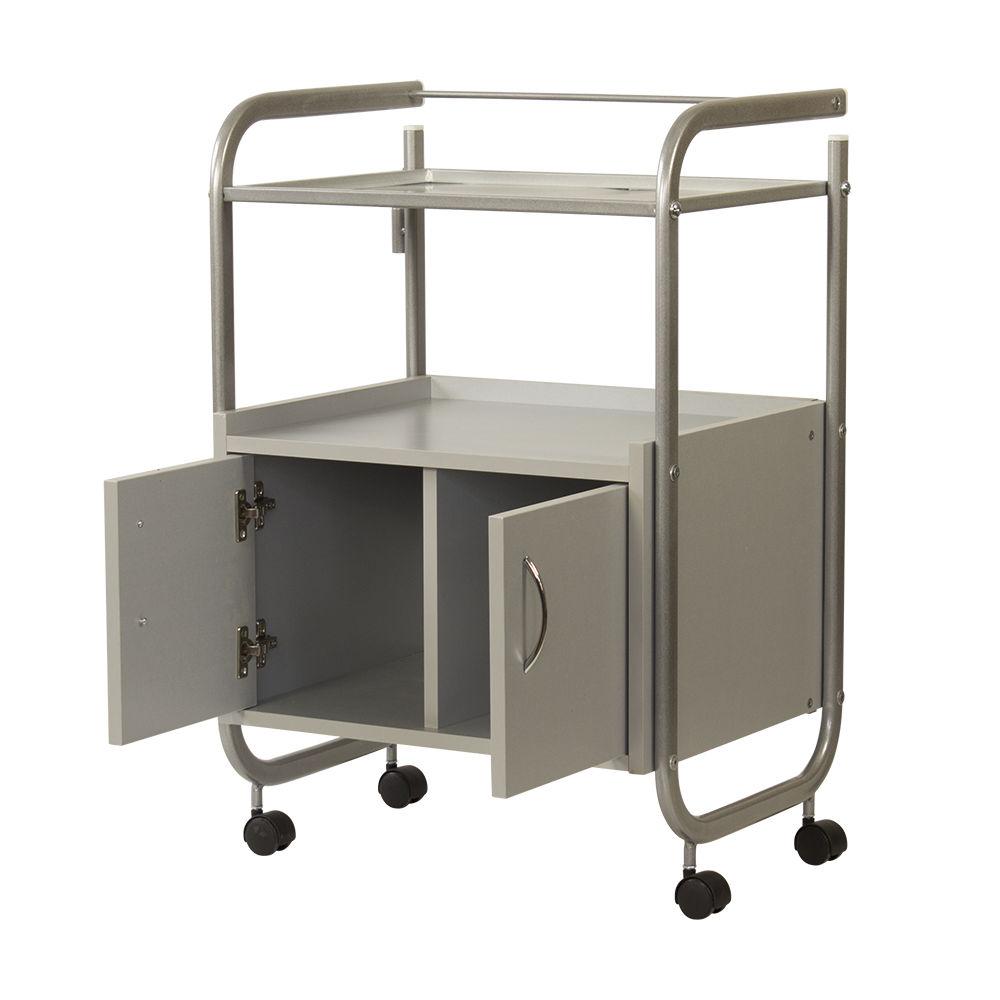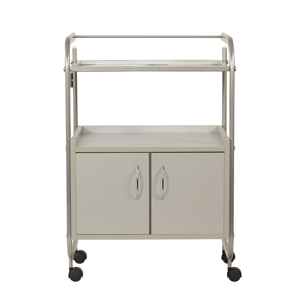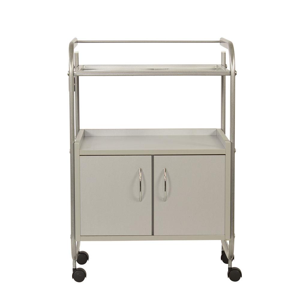 Комплектация: каркас, верхняя полочка, тумба, закрывающаяся дверками, вращающиеся колеса.