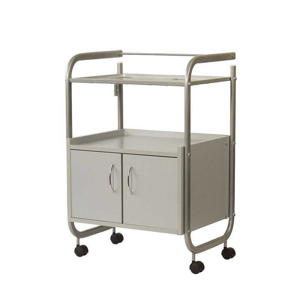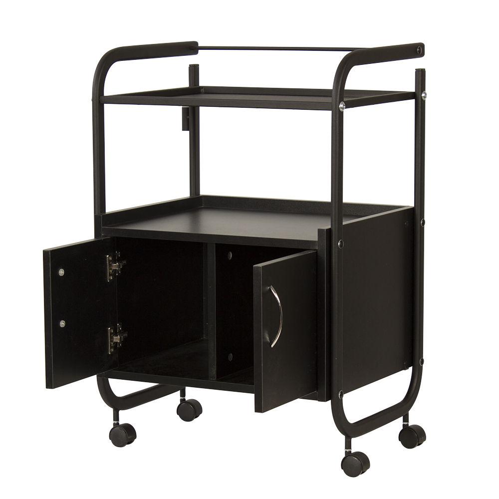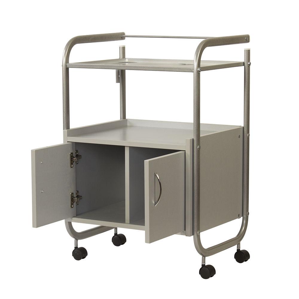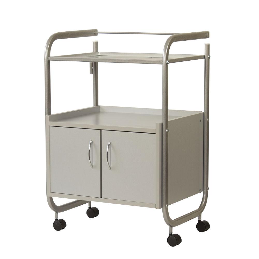 Комплектация: каркас, верхняя полочка, тумба, закрывающаяся дверками, вращающиеся колеса.