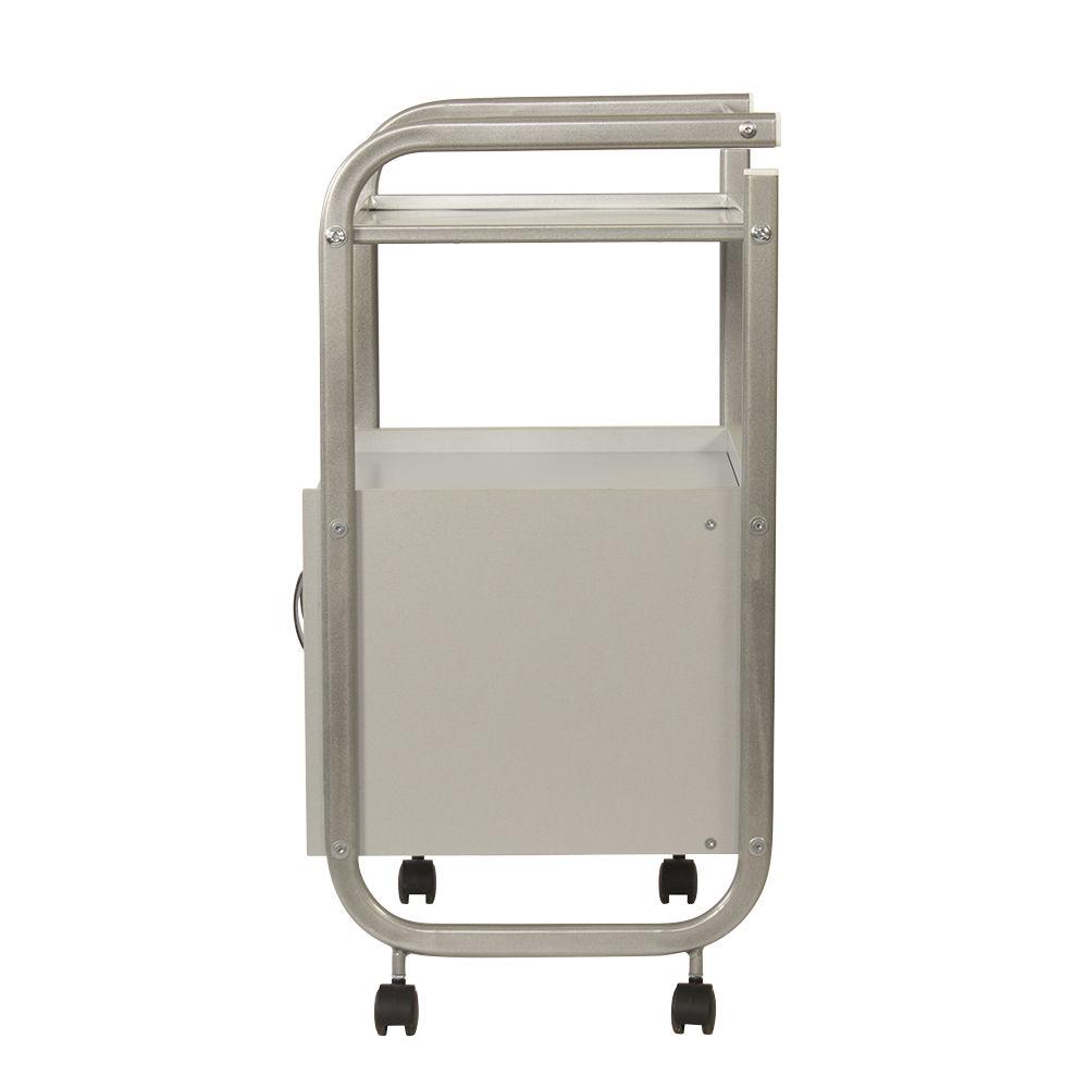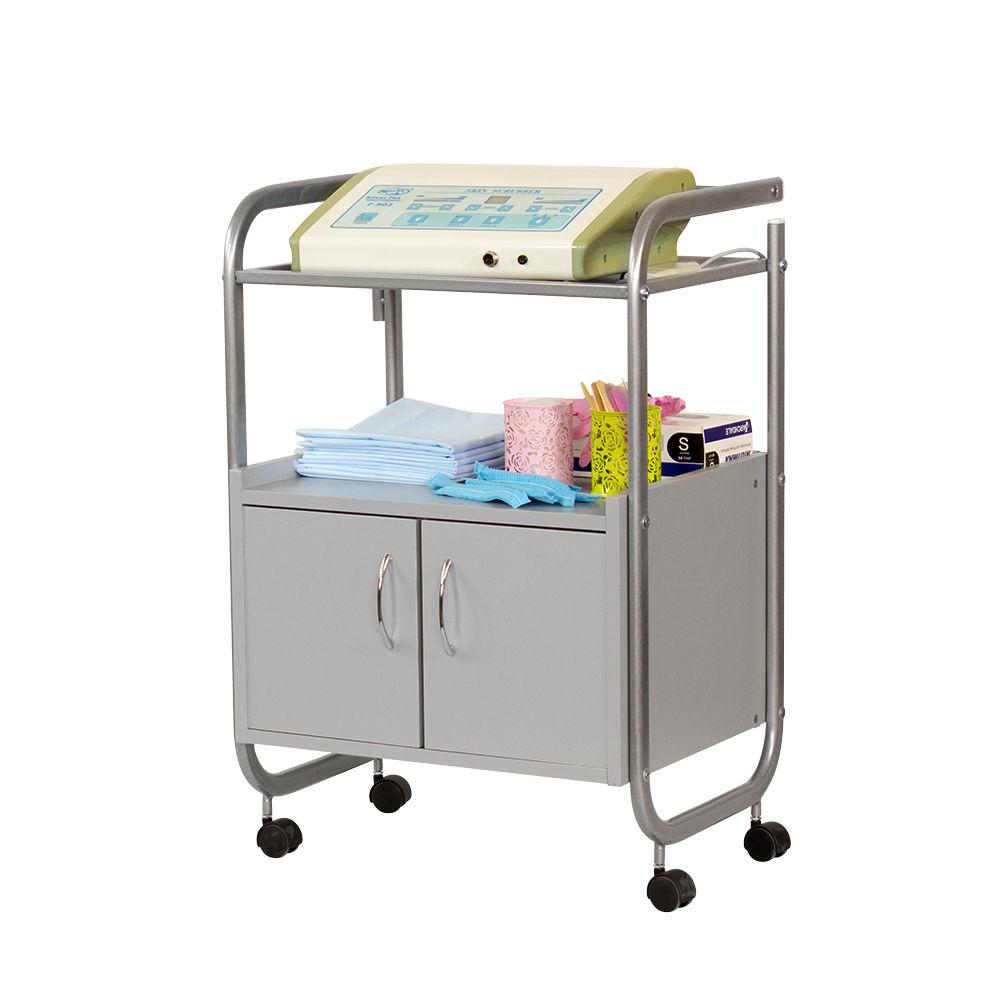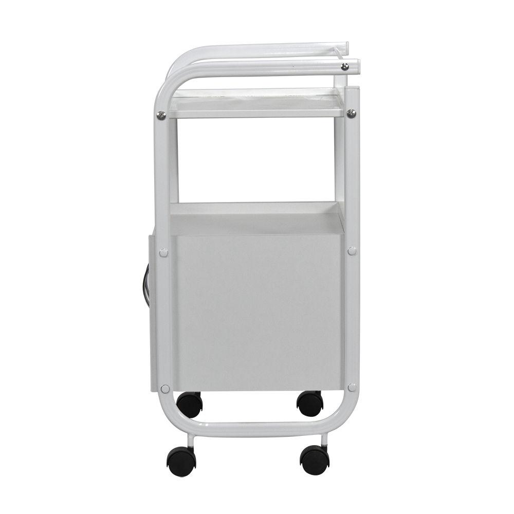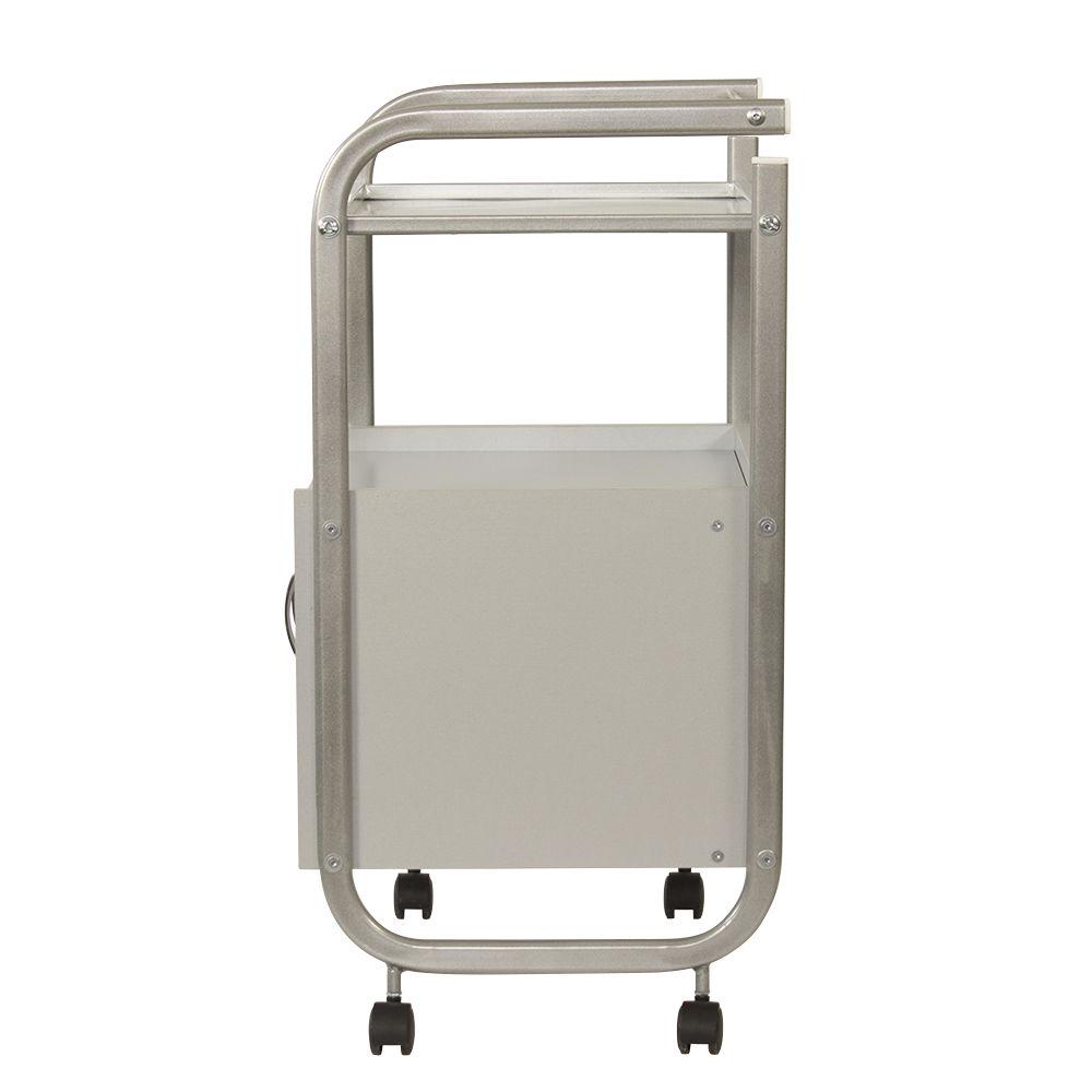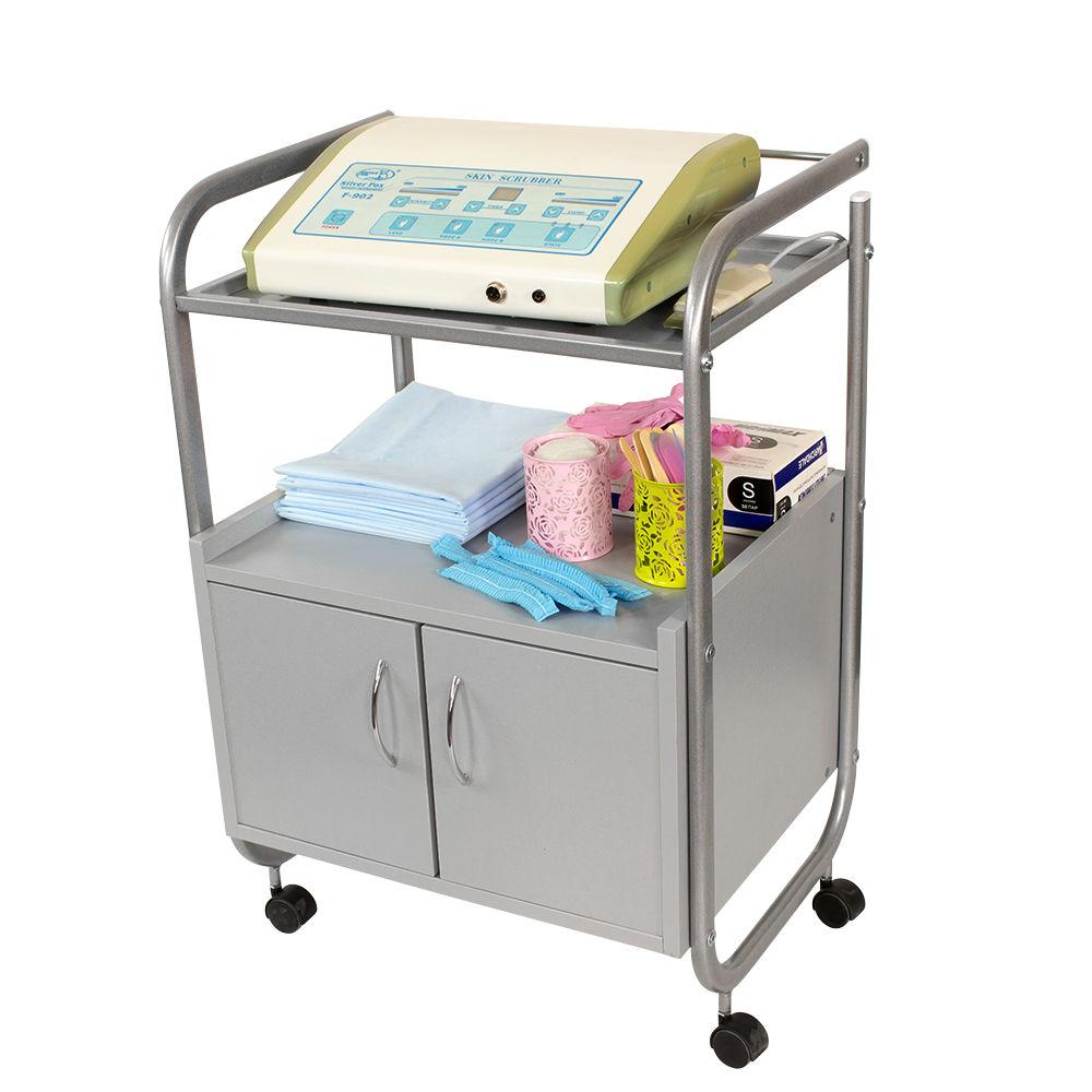 Мобильная косметологическая тележка МД-104 – выгодное и необходимое приобретение для рабочего кабинета. Это современная модель, для производства которой используются качественные, долговечные материалы. Каркас и все крепежные элементы металлические, защищены от коррозии специальным влагоотталкивающим покрытием. Встроенная тумба из ЛДСП белого цвета, внутри разделена вертикальной перегородкой на две ниши, закрывающиеся дверками с хромированными ручками. Верхняя полка из листа металла, с бортиками для удобного размещения инструментов. Купить косметологическую тележку МД-104 можно для установки в кабинете любой площади, так как она имеет компактные размеры и продуманную конструкцию, без лишних элементов и острых углов. Модель достаточно вместительна: хранить инструменты и прочие принадлежности можно на полочке, внутри тумбы, а также на тумбе. Пространства между тумбой и полочкой вполне достаточно для размещения высоких бутылок и баночек с косметикой, расходными средствами, а также для компактных косметологических аппаратов.