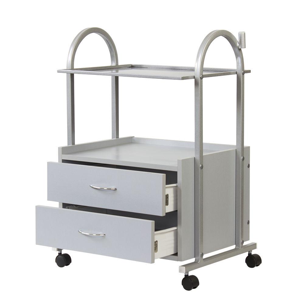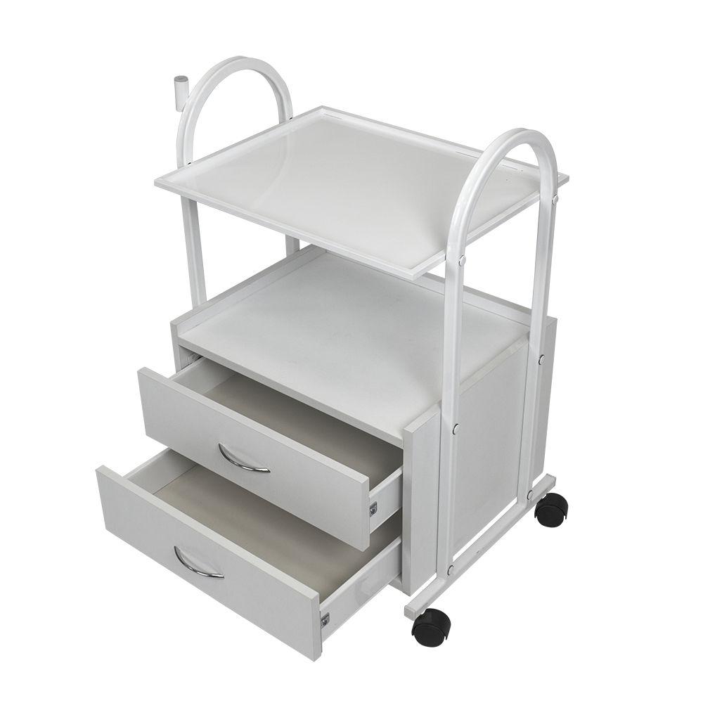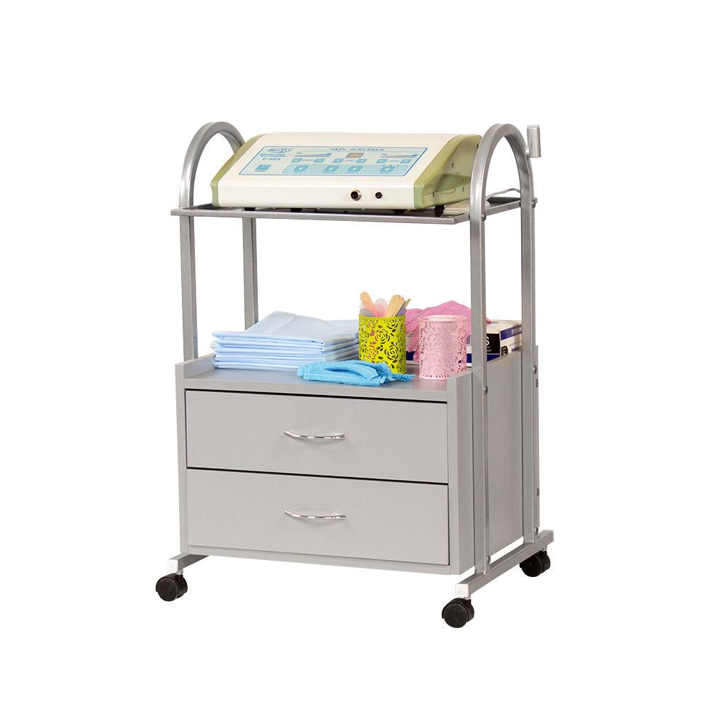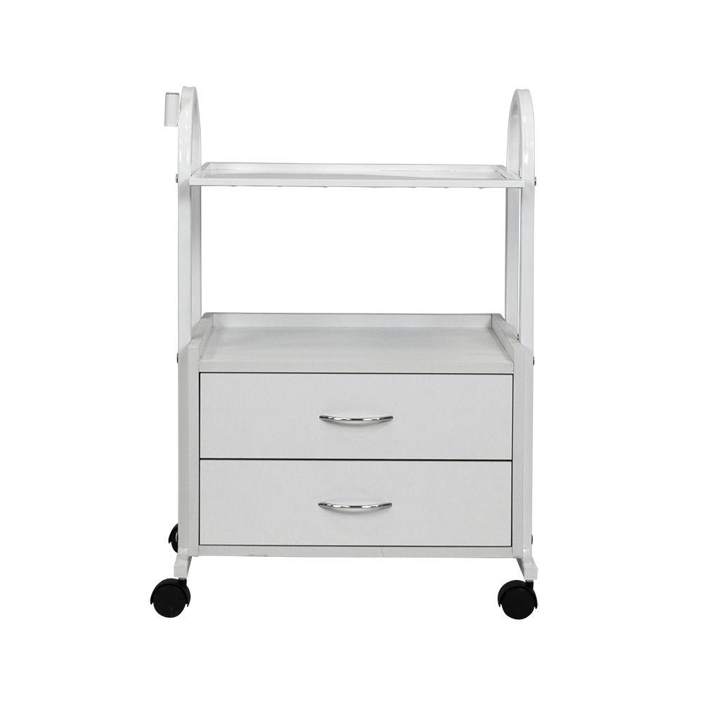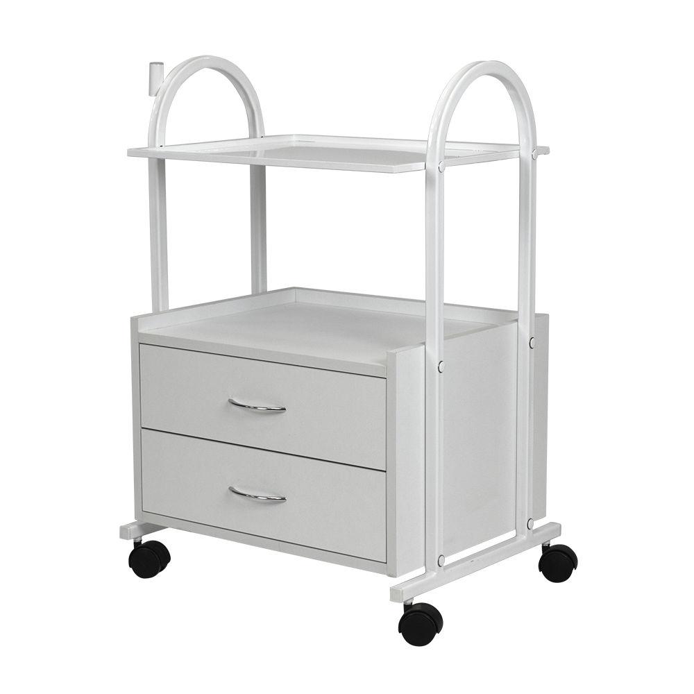 Настоящим помощником мастеру в его рабочем помещении станет косметологическая тележка МД-105. Практичная и надёжная, она создана, чтобы держать нужные инструменты, расходные материалы и мелкую косметологическую аппаратуру в порядке и под рукой. Конструкция косметологической тележки несложная, но весьма функциональная. Во вместительной тумбе с двумя выдвижными ящичками разместятся всё необходимое оборудование, а на верхней полке мастер может разложить принадлежности, использующееся во время рабочего процесса. Бортики на полочке не позволят случайно упасть инструментам на пол. Пространство между полочкой и тумбой можно использовать для хранения такого инвентаря, как высокие бутылки или небольшая косметологическая техника. Комплектация вращающимися колёсами добавляет тележке мобильности – её легко перемещать по рабочему помещению, что весьма удобно. Практичное дополнение – держатель для лампы-лупы, прикреплённый к основе. Данное косметологическое спецоборудование изготовлено из надёжного долговечного сырья, за счёт чего тележка выдержит большие нагрузки. Благодаря специальному водоотталкивающему покрытию тележка не поддаётся коррозии, выдержит моющие и дезинфицирующие средства, что облегчает уход за ней. Благодаря белой окраске, косметологическая тележка МД-105 гармонично впишется в любой интерьер. А благодаря компактности тележка не займёт много места и идеально подойдёт даже для небольших кабинетов.