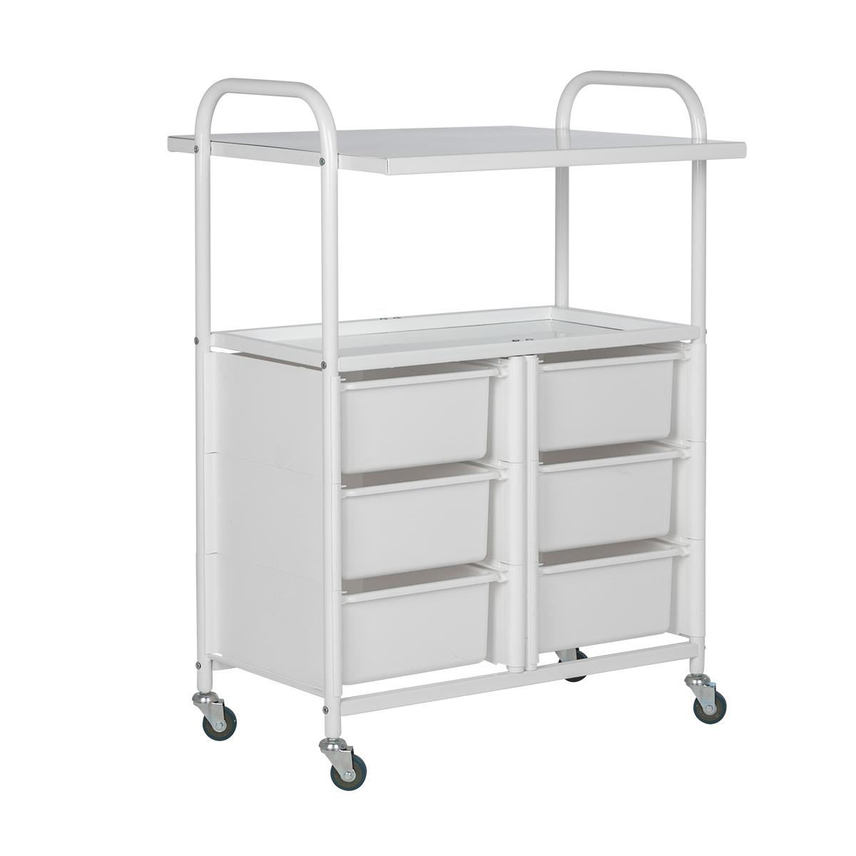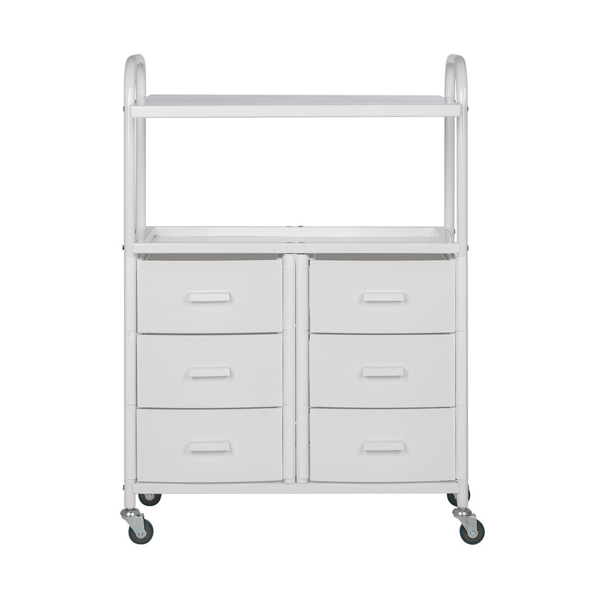 Комплектация: каркас на поворотных колесиках, 6 ящиков, 2 полки.