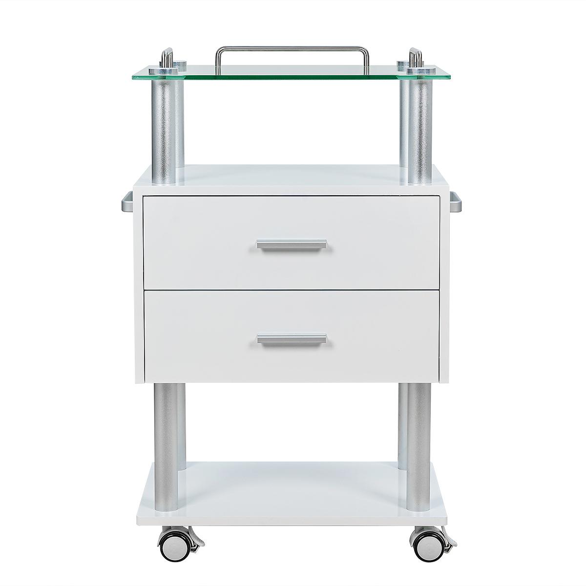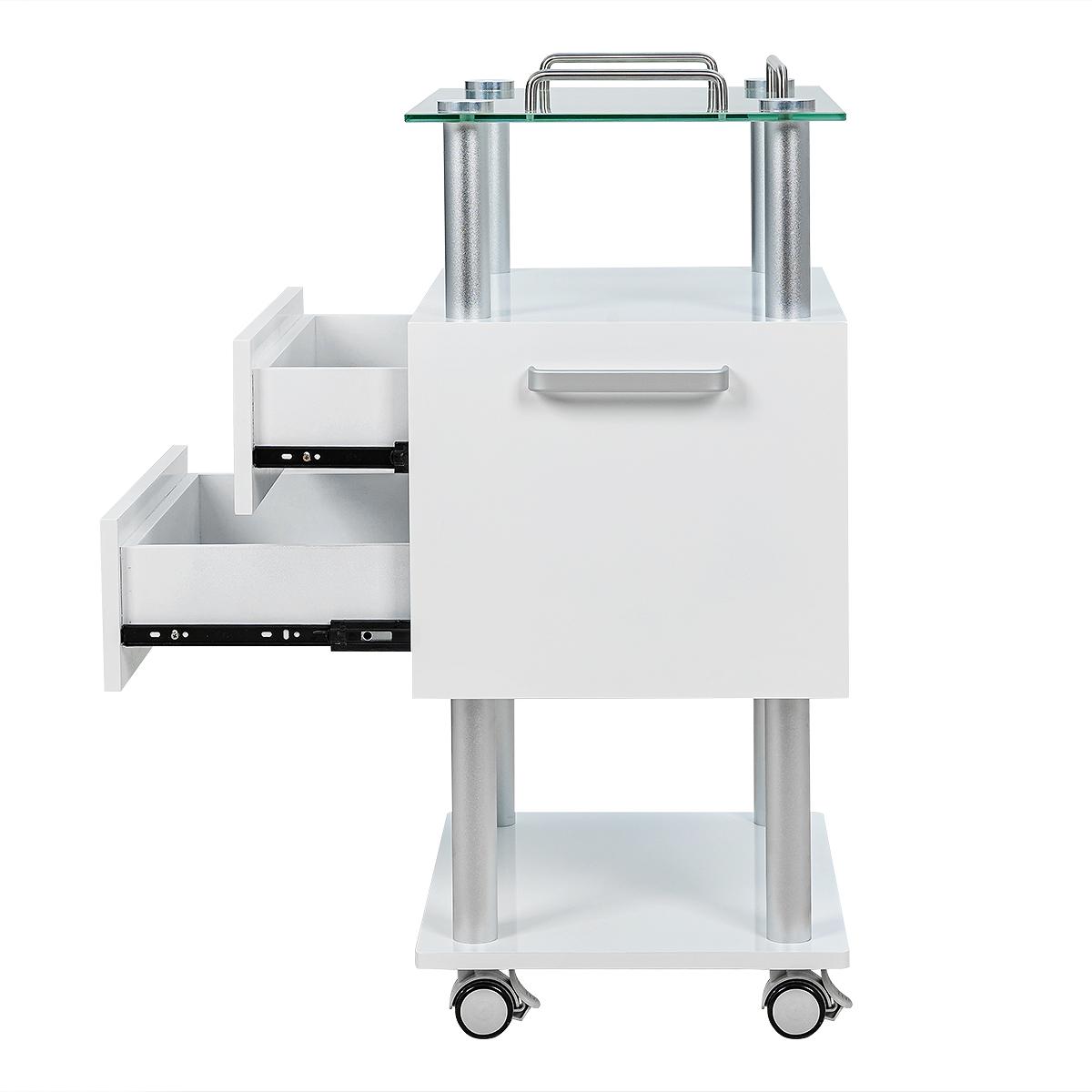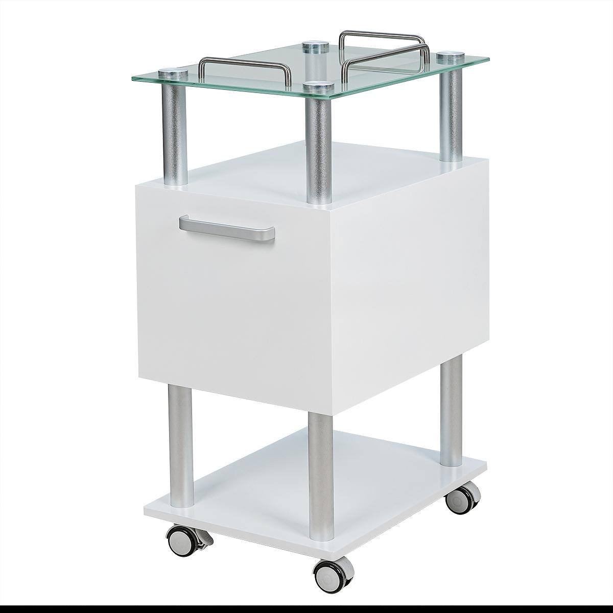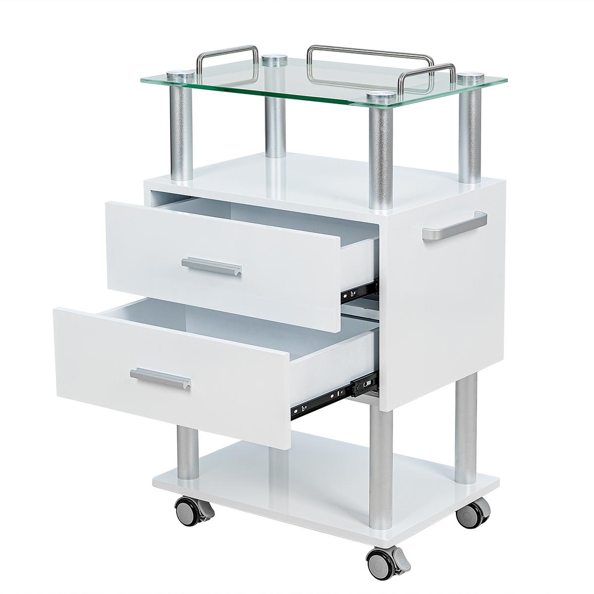 Столик косметолога МД-816 – практичное и надежное оборудование, которое эффективно решает проблему хранения и систематизации инструментов, расходных материалов и аксессуаров при проведении косметологических и СПА-процедур. Тумбочка состоит из каркаса в виде хромированных труб, внизу и вверху расположены две открытые полки, на которых мастер может удобно разместить инструменты и принадлежности, исходя из своих предпочтений и проводимой процедуры. Для расходных материалов и аксессуаров между полками находятся два закрытых вместительных ящика. Сверху столика размещена стеклянная полка с хромированными бортиками, которые защищают хранящиеся на столике предметы от падения. Столик косметолога МД-816 не только функциональный, но и компактный, он оснащен 4мя опорными колесами и ручками по бокам тумбы, с помощью которых его очень легко перемещать. Это делает работу мастера намного комфортнее, а также позволяет более эффективно использовать пространство помещения. Все колеса двойные и съемные, а на двух передних колесах расположены стопы, благодаря чему столик надежно фиксируется на месте и защищен от случайного перемещения. Качественные материалы и надежная конструкция обеспечат долгий срок службы, функциональный и стильный столик косметолога МД-816 будет долго поддерживать порядок на рабочем месте, помогая создавать комфортную обстановку для мастеров косметологических кабинетов, СПА-салонов и их клиентов.