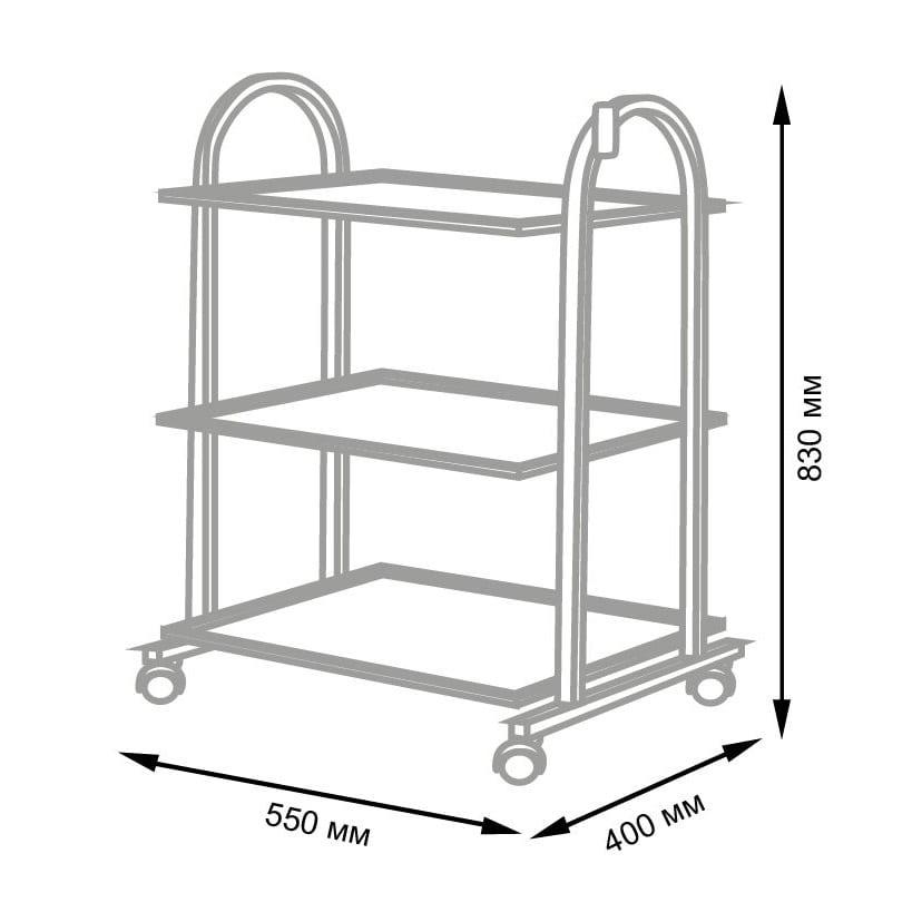Комплектация: металлический каркас, три полки с бортиками, четыре колеса.
