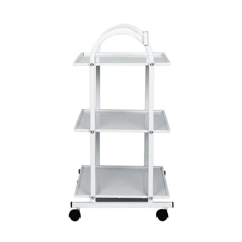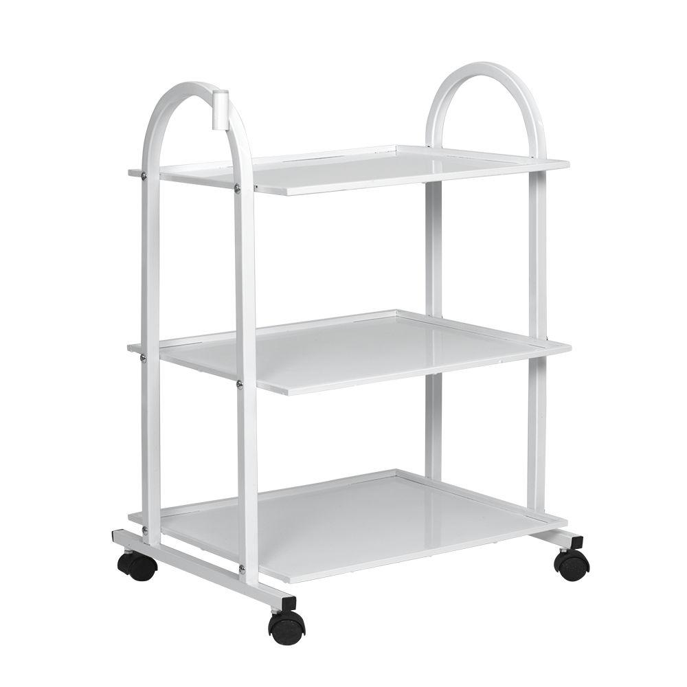Тележка косметологическая СП на колесах, с тремя удобными полками для размещения рабочих инструментов, оборудования и различных аксессуаров. Каркас тележки металлический, установлен на маневренные колеса из черного пластика. Полки также выполнены из металла и для дополнительного удобства оснащены низкими бортиками со всех сторон. Все металлические элементы окрашены влагоустойчивой порошковой краской в белый цвет, благодаря чему тележка легко очищается с помощью моющих и дезинфицирующих средств. На стойке каркаса расположен специальный держатель для крепления лампы-лупы. В нашем магазине купить тележку косметологическую СП можно недорого, так как она относится к серии доступного профессионального оборудования. Она позволит рационально разместить все необходимые в работе принадлежности и значительно упростит работу специалиста.