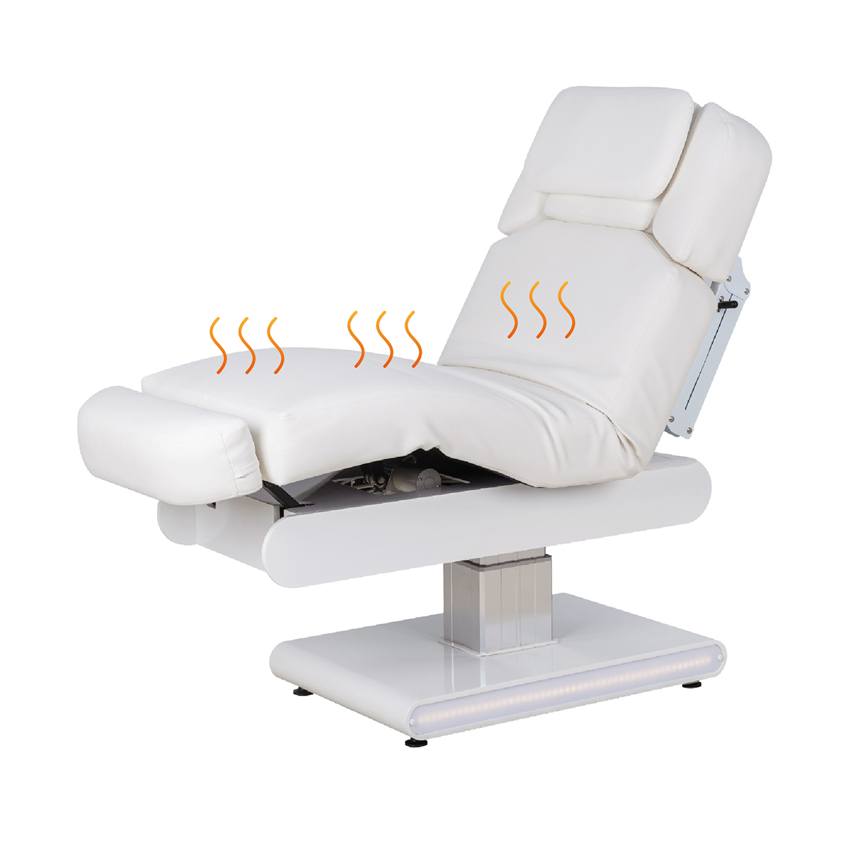 СПА кушетка МД-302 сочетает в себе элегантность, стильный европейский дизайн и комфорт. Благодаря компактным размерам (ВхШхД: 630-900х730х1900-2150 мм), кушетка легко вписывается в любой интерьер, будь то салон красоты высокого класса или уютная домашняя студия. Основание кушетки на противоскользящих опорах, каркас оснащён стильной серебристой колонной, равномерно распределяющей нагрузку, что добавляет надёжности и увеличивает срок службы. Регулировка высоты и положений кресла осуществляется с помощью 3 электромоторов. Подсветка кресла включается автоматически при подключении кресла в розетку и регулируется (вкл/выкл) с помощью пульта. В комплекте с пультом идёт самоклеящийся держатель, можно прикрепить его к корпусу кресла или стене. Электроподогрев ложа обеспечивает комфорт и удобство клиента во время проведения процедуры. После нажатия кнопки включения обогрева (красный индикатор/зеленый индикатор) температура начнет повышаться. Когда с комнатной температуры она достигнет максимального значения, то сработает защитный механизм, температура медленно снизится примерно до 35 градусов, а затем снова медленно нагреется до 42 градусов. СПА кушетка МД-302 идеально сочетает в себе комфорт и функциональность. Благодаря инновационным электроприводам, клиенты могут расслабиться и наслаждаться процедурой, в то время как профессионалы могут сфокусироваться на своей работе, обеспечивая высококачественный сервис.