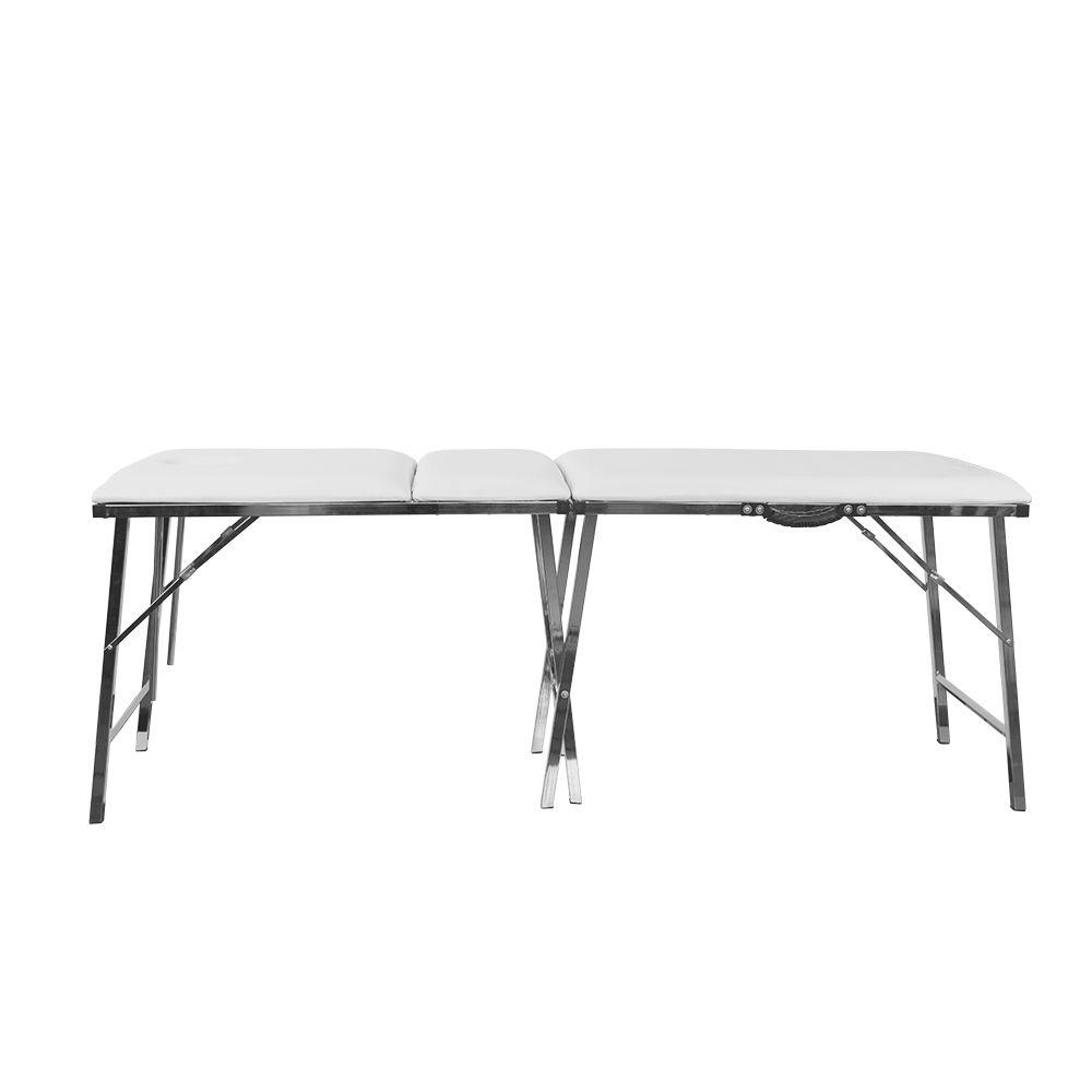 Его одинаково удобно применять и в салоне, и в домашних условиях. Изделие выдерживает большие нагрузки за счет прочного металлического каркаса. А поверхность кушетки надежно защищена от воздействия масел и дезинфицирующих веществ. Производитель поделил модель МД-3275 на 3 сегмента разной величины. Массажный складной стол состоит из: большого отделения под ноги; среднего – для головы и верхней части спины; маленького – под поясничный отдел. На верхней секции имеется специальный вырез для лица. Его можно закрыть съемной подушкой. Обивкой каждого сегмента служит плотный поролон и матовая экокожа. Поверхность не боится попадания влаги и приятна на ощупь. Хотите купить складной массажный стол и надолго забыть о его замене – выбирайте модель МД-3275. Благодаря металлическому профилю каркаса квадратного сечения, защите всех элементов от влаги и коррозии, изделие прослужит годы и переживет сотни процедур. Облегченная складная конструкция позволяет быстро собирать и переносить кушетку. Устойчивость достигается за счет подпятников для ножек. Так стол выдержит любые рабочие нагрузки. Профессионалы высоко оценят продуманность этой модели: защита покрытия от косметических средств; мягкая, приятная на ощупь обивка; практичность и функциональность конструкции; удобные размеры и возможность трансформации. Чтобы купить складной массажный стол, достаточно добавить его в корзину и оформить заказ